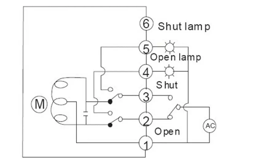 開關型帶無源觸點型反饋電動蝶閥接線圖,1,2,3是控制部分接線,4,5,6為無源觸點反饋。